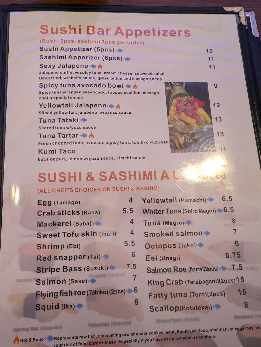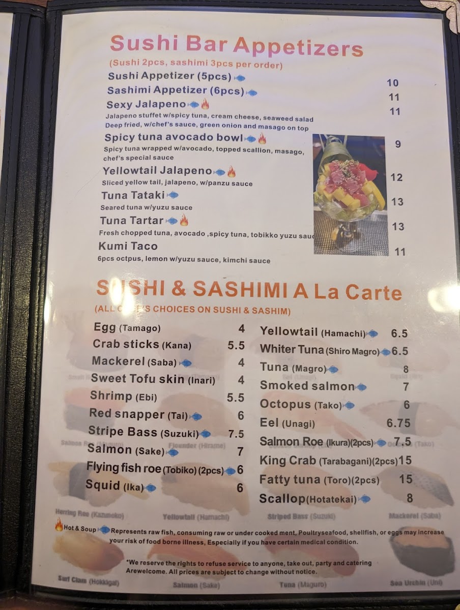 Tuna, Salmon,Yellowtail.